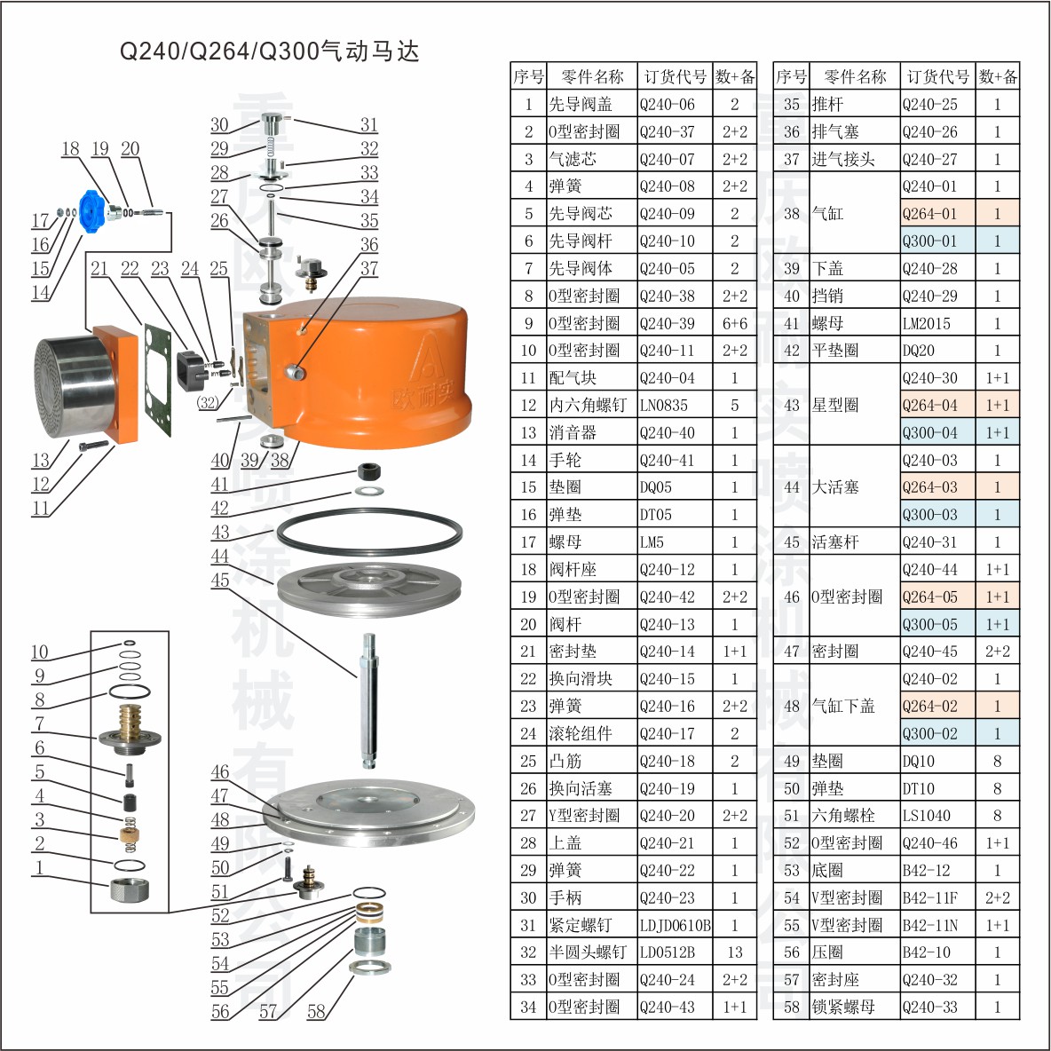 三、采用新型气动马达,气缸内径240mm,行程125mm。